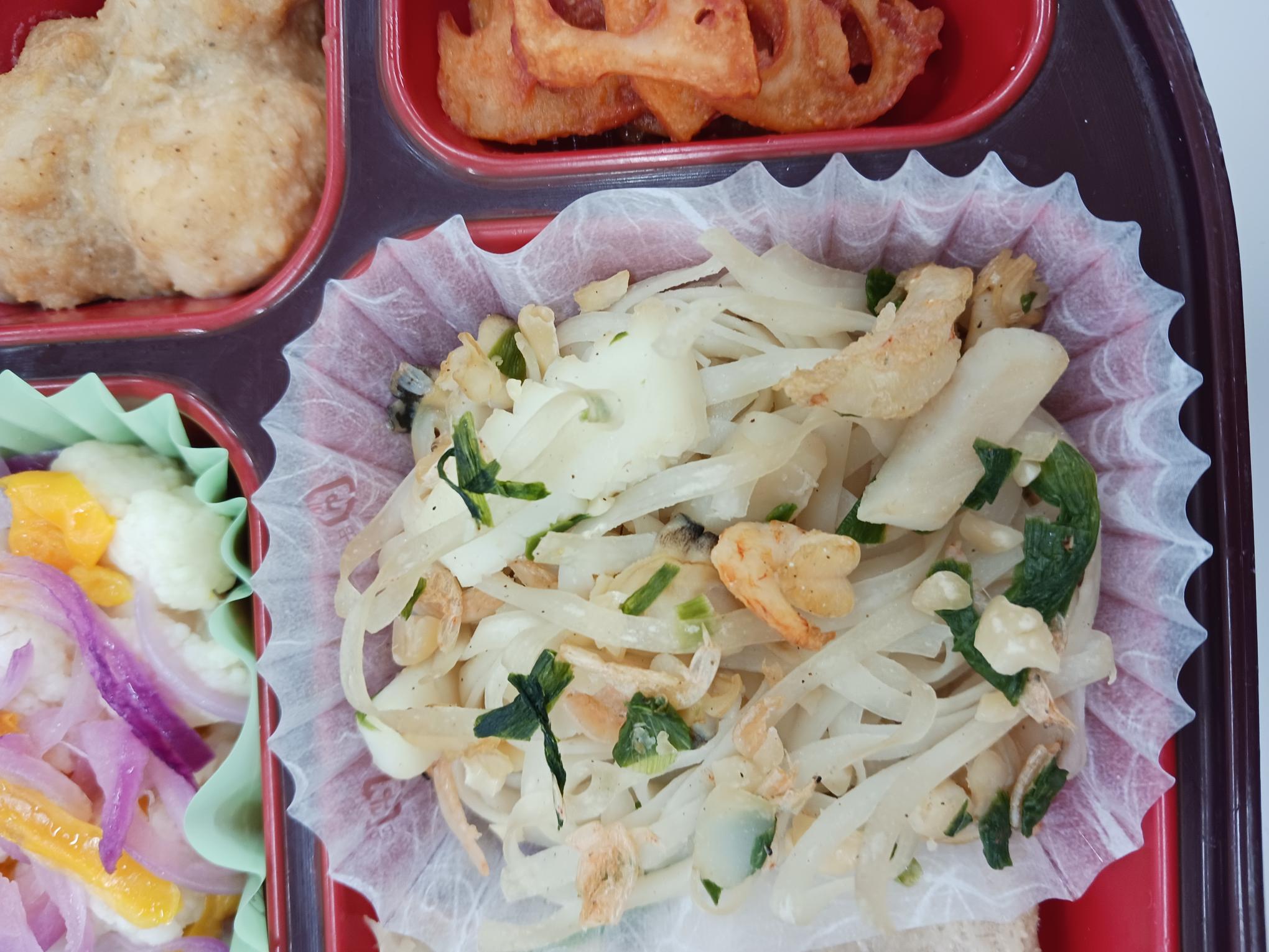 魚介(えび・いか・あさり)の香りが広がり、噛むほどにうま味が出てきます♪平打ち麺のビーフンに味が染みこみ、どんどん食べ進めたくなりますよ~!